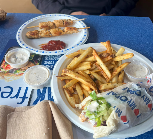 The store was very dirty including the back of the store. The two staff at lunchtime were extremely slow and unprofessional. You can't understand a single word they are saying. They did not offer me a bag and I had a couple of drinks in one hand with multiple orders. The scoop they give in the wraps is SMALL!!! No sauce in the Cesar salad. The skewers look a day old at least. The short lady in the front is the same one who served me last time and because of her attitude and the lack of quality food I'm never coming here again I'm advising everyone I know in my community and work colleagues to not waste their money...