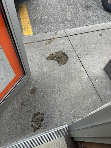 -10:50am watched back of house/kitchen employee arriving to work also stepping in poop, go to patron washroom (assuming to clean shoes?), then to kitchen to cook/work? no attention given to mess at entrance/store areas (pictures below)