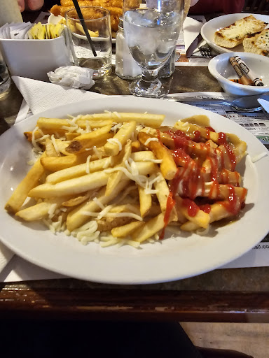 We had the cheesy garlic bread to start and for $8.00 we got 4 pieces of bread with some mozzarella cheese. The bread barely even had any garlic flavour to it, and worst of all wasn't even toasted it was discusting, mushy, wet bread and It felt like it was microwaved. The fries were just frozen fries from a store and cheep ones too. They also, obviously had been sitting out a while and then were heated up for our meal. I had a burger which was unseasoned meat sloppily pressed between to buns with some toppings thrown on top, it had very little flavour and most of the elements did not seem fresh. My wife had the seafood chowder, the broth had good flavour but the shrimp was like chewing on a tire.