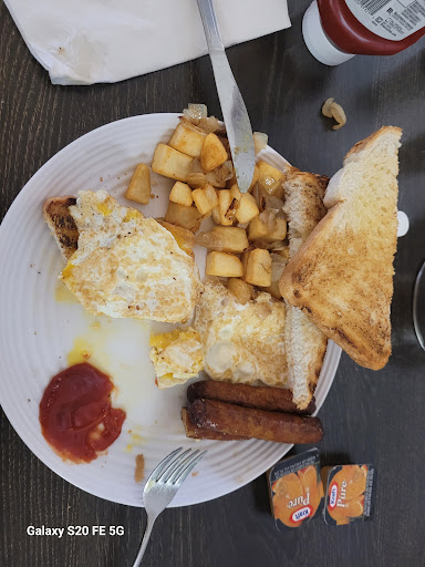 I actually had to let it sit on the table a while because it was very hot and that is unusual from where we live.. the eggs were perfect and the potatoes were hot and had to let them cool down and the coffee was actually very good also... the prices are a heck of a lot cheaper than what we're used to from Ontario... I highly...