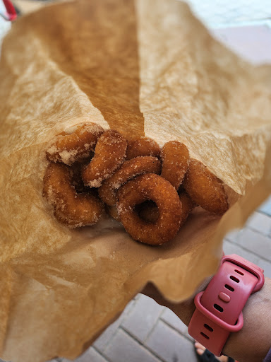 Every single mini donut I received was underfried. They have what essentially amounts to a conveyor belt deep frier, which is remarkably good at keeping them all consistently uncooked at the center.