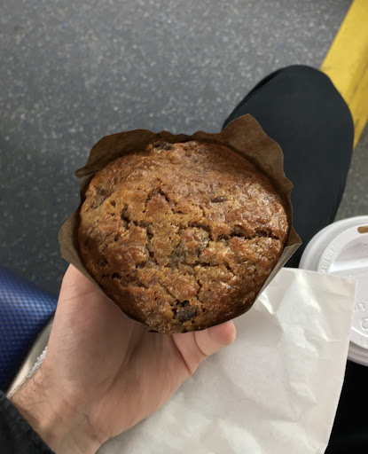 Read moreThis is a small shop in Scott Road Skytrain Station. They have coffee/tea and light meals/snacks. This is a grab-and-go place but there are a few seats in the shop. Out of the drinks I tried, I thought the decaf pistachio latte was the best - good coffee and the pistachio flavour was nice, if a little too sweet for me. I’d just ask for less sweet next time. The "Vancouver fog" (I think this was just a London fog) was also decent. The chai latte tasted somewhat watery to me. The muffins here are unexpectedly really good. Warmed up, they have the nicest softness. I tried the morning glory, raisin bran, and berry medley muffins and they were all great. The staff is very friendly and the service is super fast. This place is a huge step up from the Starbucks or Tim's that other Skytrain...