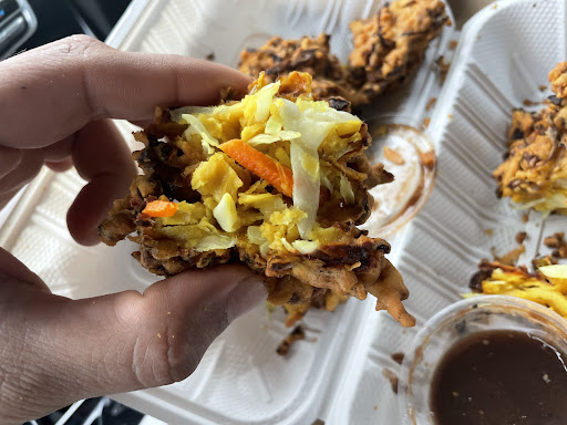 All the black part you see is burnt onion, the yellowish shiny part is chickpea flour. You could see how much chickpea flour they put in these pakoras. I was never offered any compensation for such an item by this restaurant neither refund.
