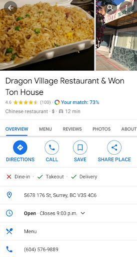 Overall I would suggest adding Dragon Village to your list of places to order from. I've read people had issues with home delivery, but with this place being in down town Cloverdale it's easy to find parking it's so quiet on the streets. So if you have time to pick up your food this place should be on the top...