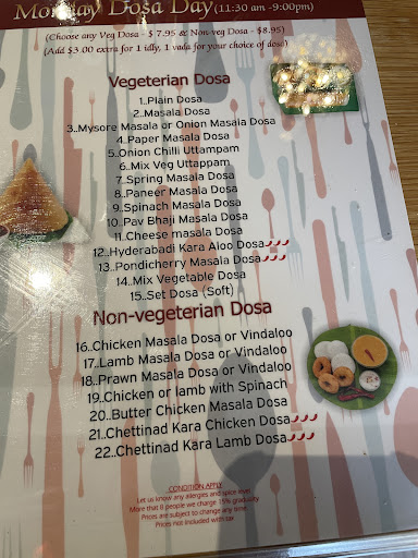 We were also here on a Monday so we were able to avail of their Monday Dosa special (7.95-8.95 for a Dosa with $3 additional for idli and vada). The dosas were slightly smaller than usual but thatâs part of the special.