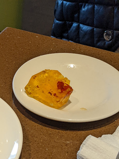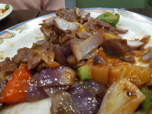 Again, the Sliced Beef with Ginger and Pineapple was bland and tasteless. There were about 6 chunks of pineapple in the whole dish, and you had to search out the thin slices of ginger which had fallen to the bottom. Other than actually eating a piece of ginger or pineapple, there was no taste of ginger or pineapple to the dish. I don't know how that is possible... they are flavors so easy to add. The beef was tender but bland. The vegetables were at least 1/3 chunks of raw red onion.