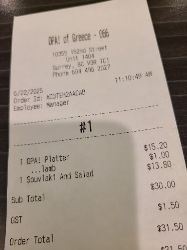 Read moreOn regular basis I keep visiting this location and always get amazing food and always find the staff to be really nice and welcoming. But giving low rating just because of the recent not so good experience because of this girl who made my pita wrap and fries on 13th Dec around 8:40 pm. The fries were not cooked properly as she took the fries out of the frier within just few seconds, the portion was really small and the wrap was not properly stuffed. That kiddo must be taught that people spend their hard earned money to get the food, so make it worth the money they are spending. Even her attitude/vibe was not so impressive. Seemed untrained. Low rating just because of this recent disappointing experience. Never had such bad experience at any of Opa s...