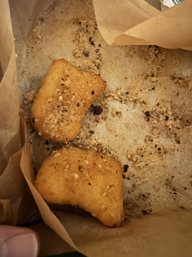 The Crust seemed like it was a medium dough stretched out to fit a large pizza, it was so thin it was. impressive. However, the edge crust was, a different story. That was a solid 2 inches the whole way around, as well as not the garlic parm that was requested.
