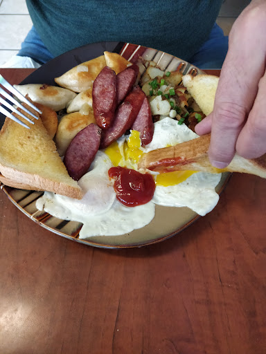 I love diners and I love breakfast, so this place is an easy hit for me. I had the omelette of the day and my dining partner had the perogies and farmer's sausage. Both our meals were substantial and tasty. I particularly enjoyed the hash browns: they're lovely sliced potatoes pan fried with scallions. Everything else was good but these stood out as remarkable since even my favorite breakfast places so far mostly have shredded potatoes or deep fried cubes.