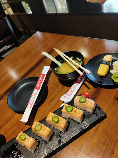 No customer service skills needed here. You get to your table and then order off a tablet, and need to place each person's order separately, so food was coming out while one person was still ordering. Food was quick as they had 3 guys on the sushi line and we were the only ones in this huge restaurant. From the outside it's hard to tell if they are open as they have the windows covered up. I also think the soya sauce was watered down or it was not the same soya sauce the bottle advertised. The miso soup tasted a bit creamy which was different and a bit weird. My friends yam tempura roll had zero crunch, which was disappointing. Glad I tried the place, everything else was ok, nothing special, but I won't be coming back.