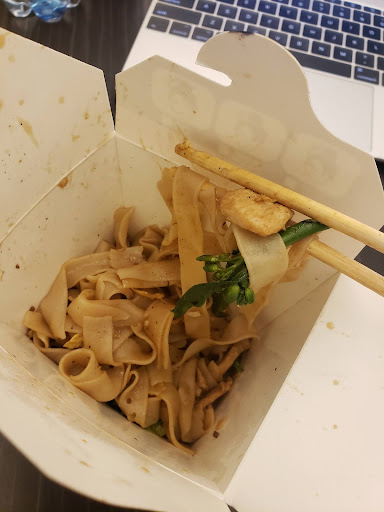 I had the pad see ew with chicken here (around 11.48 with tax) and I mean, of course I was not going to expect any authentic thai pad see ew. I got my dish in under 3 minutes which was kind of shocking but hey, I didn't have to wait for my meal at least! When I first got it, the color was definitely much lighter than expected. It's not very flavorful, just a vague sweet light soy sauce flavor and the noodles were pretty thin. Chinese broccoli wasn't bad but I guess the most disappointing factor was the chicken. It was atrociously dry. I also thought the egg in this dish was quite dry too, which would be improved if they simply used fresh eggs upon ordering. I was also pretty sad that there wasn't that charred wok flavor that you love in thai noodle dishes, but again, it's Thai express so nothing fancy. If you're looking for a quick fix, this place wouldn't be so bad but I think I would avoid it in the future. Remember, don't expect anything authentic because you certainly won't...