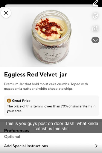 This is the worst bakery store i have ever seen or ordered should not exist who ever is commenting good about this bakery has the worst taste and is definitely a family member of this bakery the flavour fusion bakery please stop lying about your bakery in this photo there is two different types of red velvet cake you know damn well this does not look close to red the topping even does not have anything that’s close to looking like red I made a big mistake ordering on DoorDash did not see this bs coming not being disrespectful i was disrespected after speaking to them red velvet cake would have a red colour in it unless it says chocolate red velvet cake but you guys don’t have that even posted you just have red velvet cake posted but there’s nothing that shows red when I ordered it and you are telling me that’s the red velvet cake you guys make and it’s only chocolate and dark chocolate well on your page and posts it shows red are yall telling me the picture I just posted is a mistake anyone check it then any bakery could never make that typer dumb mistake a 6year old would not even be slow to do this and did not only order 1 but 3😔 this is something you guys need to fix on all your pages the flavour fusion bakery catfish inc please go change the name and stop posting catfish pictures or are yall slow yall don’t know the difference between red velvet cake and chocolate red velvet cake and no refund was received this is a scam I swear ruined my...