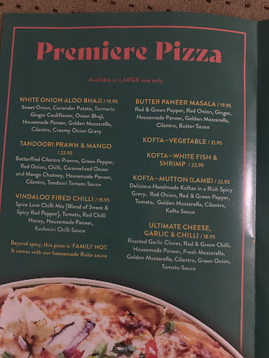 Read moreThis place is delicious. To start the mango ginger wings tasted so good. A nice light refreshing taste . I had the tandoori and butter chicken which was amazing but even though I'm a meat lover the kofta vegetable was amazing, no wonder it was recommended by the staff and the ultimate cheese, garlic & chili is to die for. Best cheese pizza I've had and it had a solid cheese pull which is so satisfying 😌. I ate enough to explode yet I don't feel over stuffed. Don't sleep on this place, it's not just a good to go pizza spot, I had a blast dinning in and definitely can't wait to see this franchise expand hopefully closer to my place 😀 . Wish I had more pictures but I ate everything before I...