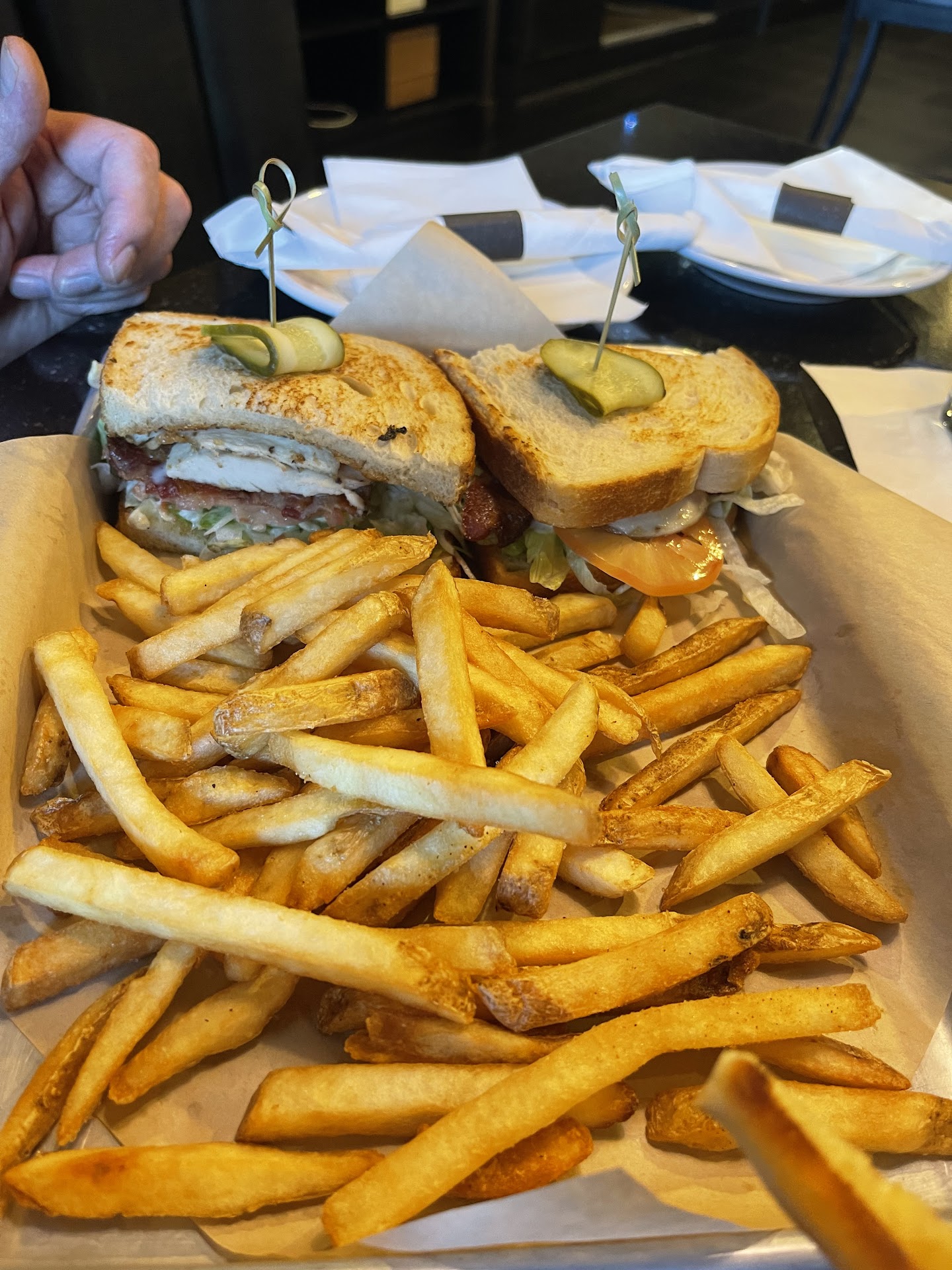 One person got the provolone beef dip and the jus was very salty to the point of being inedible. One person got the BC Honey Q wings and offered me a bite; although the taste was OK, the temperature felt off, as if the sauce came from a packet that was thawed in a bowl of hot water or the whole dish was sitting at the counter for too long before being sent by the kitchen. I had the warm pastrami sandwich and it was also OK, but I felt like the bread may have been stale because taking bites of the crust was difficult and made my palate sore. On the plus side, the fries and dipping sauces were great.