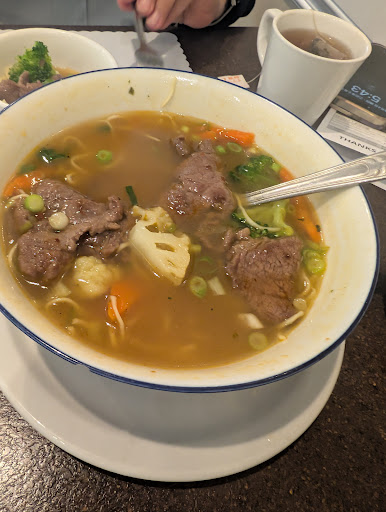 Very rarely do I eat in here, preferring takeout options, so I won't comment on bathrooms or the facilities (though it is clean and fairly well organized). The staff is open and welcoming, offering a strong selection of both vegetarian and more carnivorous offerings. My go to options are the excellent Uncle Bob's soup, various stir frys, and filet mignon. Never have I had any truly bad meals here, and it's my preference for Chinese food in the area. Peak hours can mean slower service or long waits, but calling ahead can usually help to mitigate that. I find my takeout orders usually end up being done sooner than expected, but larger groups can definitely take a longer time. Personally, I find this to taste quite fresh, compared to other restaurants with similar items, and the portions to be a bit larger and often very filling. Pricing never feels unfair, and I'll regularly have a bit extra for a quick lunch...