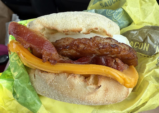 Read moreordered just couple of things at macdonalds drive thru before hitting the road to calgary, got a little confusion with the cashier on one item as i want bacon and sausage on my english muffin, we even apologize for the trouble understanding might not be too common to add, and that could break the flow of work. when we recieve our order by default always check inside if everything is in there saw my muffin was not wrap totally , still just shrug it as again understand due to changes of the order. The thing that dissappoint me is, I guess the one who made my sandwich was clearly not happy and pour that frustration on my food putting extra extra cheese (and yes as maybe normal costumer would say, why complain when you get extra stuff anyway) i like cheese but when you have guessing 3-4 slices of it the flavor is too over power . Tried to eat it , even scrape off some extra cheese as the taste is too much ,but at the end I just throw the bottom bun as the cheese melted and stuck to it. Please check attached photo of the food included with receipt, proof...
