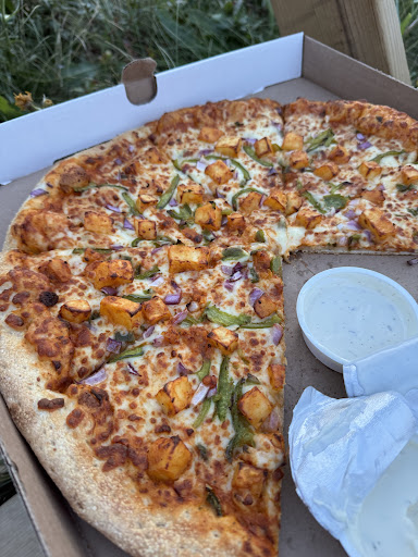 Good food, mostly reasonably priced considering portion size (mozza sticks probably an exception to this, they're a bit much) single slices available and fairly friendly staff. Though the store can be loud at times making it hard for them to hear you across the counter. One complaint i have isn't related to the food or service so much as the building. Entrance leaves a bit to be desired. There isn't any sharp rise or ramp needed to get into the store, but the door is heavy, entirely manual and doesn't have a push button entry motor for disabled customers to get in easier. Even for able bodied customers, watching them try to push through the door with both arms full of pizza is a worrying sight. Always looks like they're gonna drop everything or have the door flip the box in their face. I know they aren't exactly cheap but it would be a welcome improvement to see a disability...
