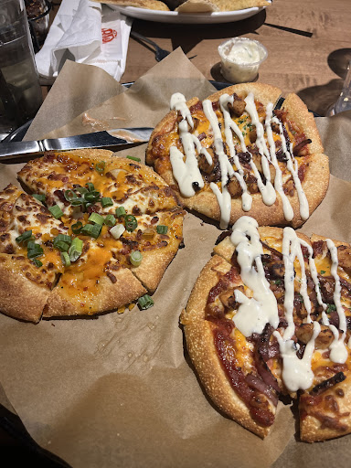Read moreWe arrived around 4:50pm 3 tables on dining side with us Food ordered was a triple play (as appetizer), spinach dip, spaghetti with bolognese sauce, a small carbonara pizza, and the pizza flight ( 2 bourbon bbq pizzas with Thai sauce base and one pierogi pizza.