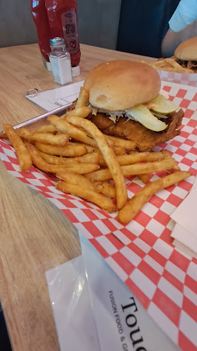 Read moreA member of our vacation troop found this restaurant on Google and thought it sounded cool. So we jumped at the chance to try something different in Sydney. The menu looked really good and everything we saw brought out looked awesome and even a bit over the top in a very good way. We waited and waited and waited listening to pretty loud music, although we were right under the speaker so the volume was understandable. But the waiting was a bit much at the very least, a half hour, maybe more. When they finally delivered the food, they screwed up my daughter's and my order. They fixed my daughter's right away because they noticed, but mine, I had to wait at least another 10-15 minutes. Everyone was pretty much finished before I finally got my butter chicken burger. Once I finally got it, I wasn't really hungry anymore.