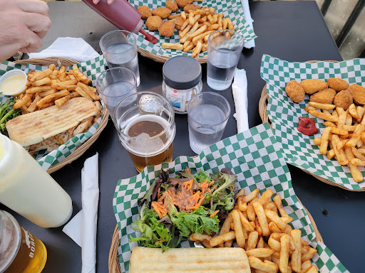 I had the poutine which was below average for the area, and for some reason, (I suppose to make it look fancier/justify the price?) it had big chunks of pepper in it, which was just odd. I ordered the large and noticed it was served in really large but hollow dish to make it appear like you are getting more. The portions were really small and expensive for what you are getting. The kids had nuggets, which tasted like they just came out of a box and were reheated. My sister had the fish and chips which she thought was really good, though a smaller portion of fish than she would've liked. For drinks, I got the lemonade which looked amazing but tasted... not like lemonade, and not very good.