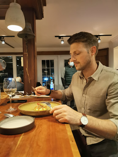 The 4 course menu tonight was spectacularly good. The cauliflower couscous with a wonderfully sharp sauce made a great appetiser. The scallop and beetroot fish course was nicely balanced, the purĂ©e superb. Both the options for the third course, lobster risotto and venison, were tasty. The venison probably edged the win - the risotto could take the cayenne (we think?) being toned down a little to let the lobster sing louder, but thatâs being pretty picky. The potato purĂ©e with the venison was gorgeously smooth and rich - chef clearly knows his way around a good purĂ©e. A reasonably priced French Sauvignon Blanc helped everything along splendidly.