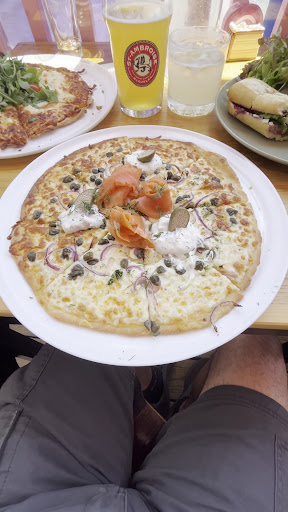This is a cute little pink place with a nice view on the beach and the St-Laurent. The decor is very beach house like. The staff is friendly and the service is pretty fast. We went there for a light meal before our cruise and went back for dinner after. We had the Coquille st-jacques, the ham and cheese panini and the pimped sheppard's pie. The latter had great flavours and was my favorite. We also had a cappuccino and expresso plus a chocolate croissant. The coffee was average. And I wouldn't recommend the croissant. It was dry and not crispy. But it was a very nice experience in general. I do recommend you dropping by to grab a drink and food and enjoy...