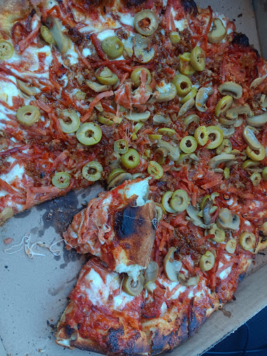 Soggy dough,not cooked enough on bottom,still white. You figure the 7 or 8 guys back there would check for quality control. Cheap on the toppings only toppings visible were the bacon bits and uncooked mushrooms,where is the peperoni? Uneven cut slices. Lukewarm pizzas,I live two minutes away and transported them in a pizza bag.