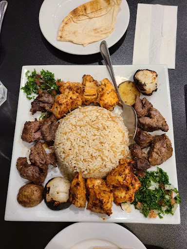 My wife and I were the only diners tonight, a few take out orders were picked up as well during our meal. We order the Lentil soup which is always delicious! Then we had the Mixed Kabob Platter, which is a mix of Beef Tenderloin and Chicken Shish Tawook kabobs. Rice was in the center with small Fattoush salads in either side. Everything was delicious!!