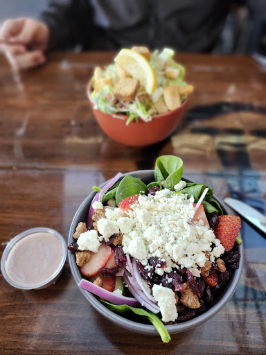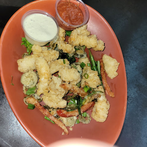 Read moreOur waiter (I'm so sorry, I forget your n'aime but you were wearing a pearl necklace and had short black hair) was excellent, super super kind person. The service and the atmosphere were the best parts. My sangria was great, but they were out of both of my husband's top picks, and ran out of the cheap bourbon and it was a three dollar upcharge for what they had when my cousin ordered an old fashioned. I ordered the feta bruschetta chicken with no bruschetta (tomato allergy) side Caesar and broccoli and mozza sticks to share. The mozza sticks were great and oversized. The chicken the dish worked really well, but the chicken was over frozen in texture which threw it off. The broccoli was well seasoned, again frozen texture, but it all tastes great. My husband said their hot honey chicken pizza was to die for and thoroughly enjoyed it. All pretty typical bar stuff. "Rock Of Ages" was playing vibey music that was enjoyed pretty well across the bar, and the atmosphere was friendly and...