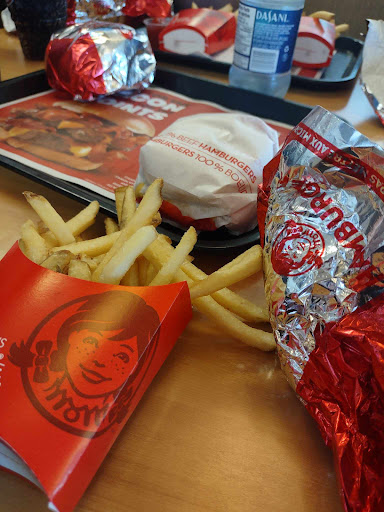 Food was as expected, service was tolerable at best. Initially, the front cashier was not paying attention and needed to be poked to respond. Next I ordered 2 meals, two burgers and some meat on the side for my dog. When receiving the order I had told them that I wanted it to go to which the cashier denied me almost instantly to say that I actually said for here, not one to argue I basically just brushed it off and said it’s all good. next, because my girlfriend and I both ordered the same exact stuff (she replied that I want the exact same thing as him) we received everything but another burger which was not an issue they ran me through for the burger but again he denied us saying we were the ones that messed up on the order. Again I shrugged it off and said it was okay and got out. Other issues was essentially looking in the back to see a good chunk of workers picking food without any gloves and eating them in-front of product, which I believe to most people is quite unsettling knowing you are about to eat food that a stranger has been eating over. Have been coming here for a decade now from basketball tournaments and I’m left with disappointment that Wendy’s has gone that downhill. I don’t usually leave reviews but I love Wendy’s and hope something can be done about this.