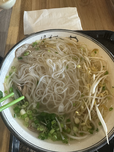 Came in to have some Pho with my wife. The server was nice. The atmosphere in the restaurant is fine, pretty wallpapers. However, the food was the most disappointing part, and it was the worst pho we have ever tried. My wife ordered pho with sliced beef and beef balls, and I ordered the satay special pho. My wife's broth tasted just awful "pool water", as my wife described it. When I tasted it, it almost tasted soapy. Then the beef. Look at that photo. We came in shortly after opening, and this beef looks like it had a 5 week long shift work building pipeline and then came back to our plate. It was old, dry, and not tasteful. The beef balls also had a weird taste to them as if they were not fresh. When paying almost 16$ for a bowl of soup, you would expect better quality ingredients. Maybe this place is better for other dishes, but I would not recommend this place to...