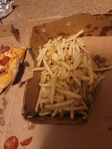 Sans compter que tout les aliments n'était pas super bon. Presque aucune garniture. Une pâte à pizza sec et très mince. Frite sec et trop trop trop cuite & très froide.