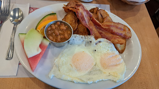 Read more2e fois que je viens, je prends une classique qui servent partout (2 oeufs avec saucisses) qui vient avec fruits, patates, et café. 👍 Plein de refills de café offerts. 🫤 La portion de fruits est un peu petite, mais c'est parfait pour quelqu'un qui les manges juste pour se donner bonne conscience. 👍 C'est vrai que les patates sont particulierement bonnes. 👍 Le staff est très accueillant et pas de rush a finir sont café et quitter. 👍 Musique retro en arriere plan qui donne un ambiance relax 👍 C'est bon et pas cher, ce qui est agréable a trouver aujourd'hui que tout a augmenté en fou.