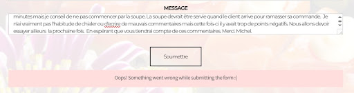 Read moreJ'ai tentĂ© d'Ă©crire directement au lieu de mettre un commentaire ici mais mĂȘme l'option d'Ă©crire au restaurant ne fonctionnait pas.