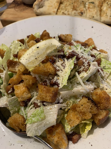 Had a glass of the house red wine, which was elegant as hell but there was also a generous selection of italian classics to choose from. The menu was overwhelming only because every dish I read made a little more drool drip out the corner of my mouth unnoticed. We went with the Caesar Salad and Garlic Parmesan Loaf to start (I shed a tear when it came) and the Fettuccini Alfredo and New York Strip w/ veggies for our mains. Wow. I donât even remember chewing anything. The steak was tender and cooked to perfection; the veggies were fresh and seasoned elegantly, while the pasta was clearly handmade fettuccini and melted in your mouth like butter. The pancetta on top tasted like Christmas morning. The loaf and salad were basic dishes but carried so much flavour I was barely able to hold a conversation while I viciously shovelled all this incredible food in my mouth in a matter of minutes.