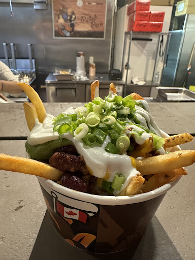 The staff have zero customer service skills. The food is WAY overpriced. After taxes you're looking at almost $17 for a poutine - that is bananas when you think about just how little it costs to make one. You can go to a local restaurant in the village for that and get a decent meal with better service. The portions are small. My wife and I shared one, and there is honestly not enough of a serving to fill one person. As well, the photos of the different poutines have the serving size piling out of the container (hence the name mile high poutine), yet when we got ours (and everyone else we saw) it was below the top of the container and probably equated to around half of the amount in the photo. As well, the ingredients are of poor quality. Honestly, don't spend your money here, instead go to a good fry wagon and you get get a massive poutine that overflows the container, that is way better quality, with way better service, for less than half the price of this place.