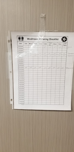 While we were waiting I took my son to use the washroom, but the seat was covered in something gross and I didn't feel comfortable just wiping it. So, I asked them to take care of it. They said it would be just a moment, but my little guy couldn't wait. So, we used the girls (my wife took him). Before we left after eating I check the washroom, and it was still gross. Attached is the cleaning checklist they had posted (it's from last month). I hope it's not accurate, other wise it's been a month since they cleaned it.