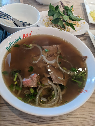 ย ย ย Read moreThe food is really good here aside from the typical MSG soup but the amount of meat is really good in the pho. Sometimes it's a hit or miss and I would like to see more consistently. The vermicelli is amazing and I will come back here for it every time. Customer service isn't for your average Karen. I've seen these reviews and it's an Asian restaurtant not your typical average Karen place alright? Could it use some more professionalism, sometimes yes. Most of the time the servers are off doing their own thing and you go pay your bill up front by the till. Sure their English isn't very good but just giving them the number or pointing at the menu is good enough. The restaurant is very self serve and focuses on the soup as you can see the set up on the tables. Every time I come here the place is sadly dead and mostly skip drivers are coming in. The restaurant itself is very beautiful and modern. Anyways, if you're an introvert and want a solo pho meal, this place is the spot as all the tables have the...