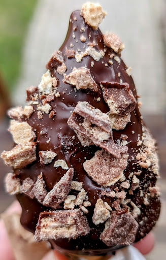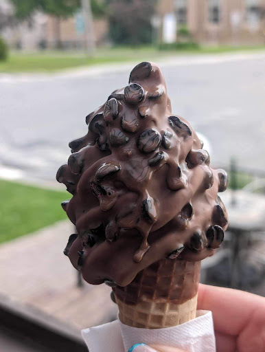Pour ce qui est du côté crémière : 13.75$ pour un petit sorbet trempé et un petit sunday à l'érable, je me l'explique encore difficilement. Les peanuts étaient en extra 🤷🏽♀️. Le goût était...
