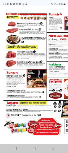 Mon conjoint a pris la côte de boeuf en spécial, portion correcte mais suffisante avec le choix d'accompagnement. Il a aimé le goût et bien aimé sa pomme de terre au four garnie.