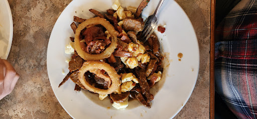 went there to eat with my boufriend and my two kids , the waiter was very bland and cold he didn’t talk to us much didn’t even ask if we were ready to orde he just stood in front of us and waited for us to talk to him , no smiles nothing.. i ordered our food the server left and came back about 15-20 min with only our food he then proceeded to tell me he didn’t write down what i ordered for my kids because he didn’t know i ordered for my kids i was very upset and on top of it all when i changed my fries for a poutine he didn’t add an extra he simply added it as if i ordered two poutine which cost more then just an extra , which i only realized when looking at my receipt in the car . so anyways i then reordered for my kids and asked for the manager there was no manager but a young woman came back and asked us the problem i explained and she seemed more nice and understanding she got us extra fries since we gave our poutine to our kids until they had their food but the waiter still didn’t order for my kids he came back a second time and asked if we were still ordering for our kids i was speechless … after a while my kids finally got their meal i has one free déserte offered in total it cost me 66$ and my time i was still generous enough to give the server 8$ tip .. he never said thank you he never once apologized.. food was grate but i don’t think i will ever...