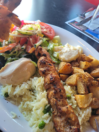 Excellent food, great portions. No liquor license. When we arrived, the tv was playing Lebanese music videos which were confusing and very entertaining. Great plates of food. I had the combo plate and my wife had the vegetarian plate. Both were excellent. Recommended. Felt authentic and fun. I'd never had a non-alcoholic Lebanese beer before. Very sweet and good. Like a ginger...
