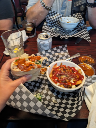 Maggie was our server. She was outgoing, very friendly and went above and beyond our expectations! There were 4 of us and my husband and I split a chicken ceaser wrap and upgraded our fries to a poutine. She split our meal before she brought it out which was fantastic. I also tried their homemade wing sauce to spice up my wrap: it had quite the kick to it.