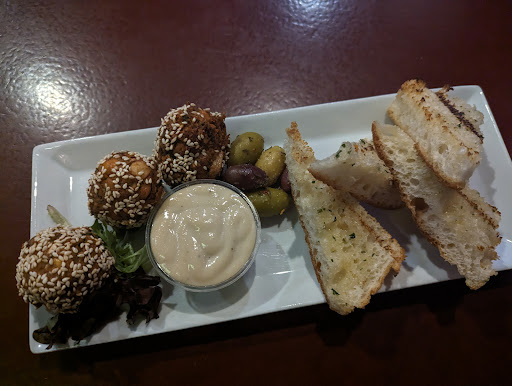 When placing the original order, I ordered a wrap to go (my lunch for the next day). "No tomatoes please". 40min later, (that's how long it takes for the baked falafel option), I get the wrap. I've learned to always check my order. Good thing I did, it had tomatoes.(also had a side of ranch for my veggies. In a VEGAN menu item ๐คฆโโ๏ธ) I called the server over and asked they remake it. "Is it ok to just take the tomatoes off?" "No. Everything will taste like tomatoes. Just deepfry new falafel, It's fine." She brings the bill, I ask if they can take 10% off. "Oh... I'll have to ask" Bartender come over "so, what's the issue here?" "I clearly asked for no tomatoes. If I hadn't checked, and noticed back in our hotel room when packing for lunch tomorrow, I would have been pissed. I hate tomatoes, they give me serious Ick. Do you have any foods you can't stand?" "No but I understand. And you did notice. and we are fixing it. If you had noticed later, you could have called and come back, and we would have fixed it. So we won't be giving you a discount." I didn't bother to tell her all the other issues we had. I was too mad about the audacity.