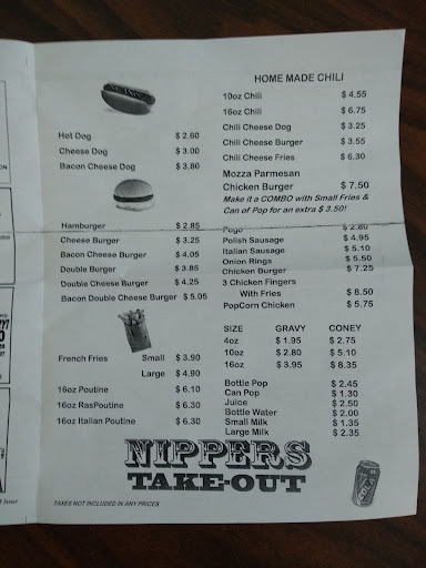 Read moreSo I’ve been coming here for over 25 years. Honestly it’s been so long that I’ve lost track. Nippers has changed owners over the years, but it’s maintained it’s quality and taste throughout. The prices aren’t bad either…even with the rise in cost of everything everywhere in recent months. All the guys are super friendly and treat everyone with respect. My fav is the double cheese no cheese burger (inside joke) and the fries are the best especially loaded with vinegar. I just wish they were open...