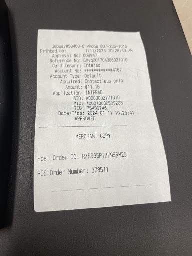 If I could I would have given a 0 star. Bad customer service. The girl at counter does not know how to handle a customer. What I said to her is that just write eat in on my receipt. It for the reimbursement purpose from the company. She started tripping. She backed up and said I don't know what you r saying and that she I not responsible for that. She said she just makes subs that's it. Every other place I go to they never have any problem in doing that when I ask them to write eat in on receipt. Obviously, she needs a training. I wanted to cancel my order and got my money back instead. Would have gone to other restaurant. Very disappointed and disgraceful. She needs a re training.