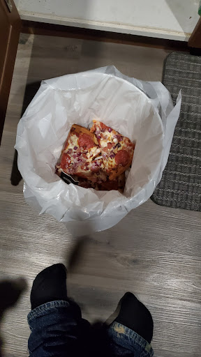 Read morePizza has made the wife's stomach hurt, so she tried ginos gluten free to see if it would help. Well let me tell you, if you want flavorless cardboard, this is the pizza for you! The cardboard molded right into the toppings, and the taste of cardboard infused cheese with onions.. you just can't compare it to anything else. One single bite of this delectable pulp wood and you just can't put it down. Your throat, I mean. She was gagging in what seemed to be total awe as the explosions flavor in her mouth met with the soggy yet some how try gluten free crust. Apparently gluten is essential in pizza for not just flavor, but also structural integrity. I had a regular Canadian, it was amazing. 10/10 would recommend. Just get it...