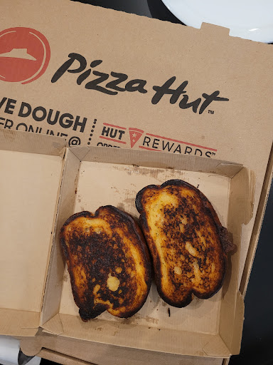 Let's start with the garlic bread, shall we? Now, I appreciate a little char on my food from time to time, but what I received could have doubled as a weapon in a medieval battle. I expected a subtle hint of garlic, but instead, I was greeted by the aroma of a forest fire. It felt like the bread had been used as a torch during a failed attempt to summon the pizza gods. Bravo, Pizza Hut, you've managed to transform garlic bread into the equivalent of charcoal briquettes.