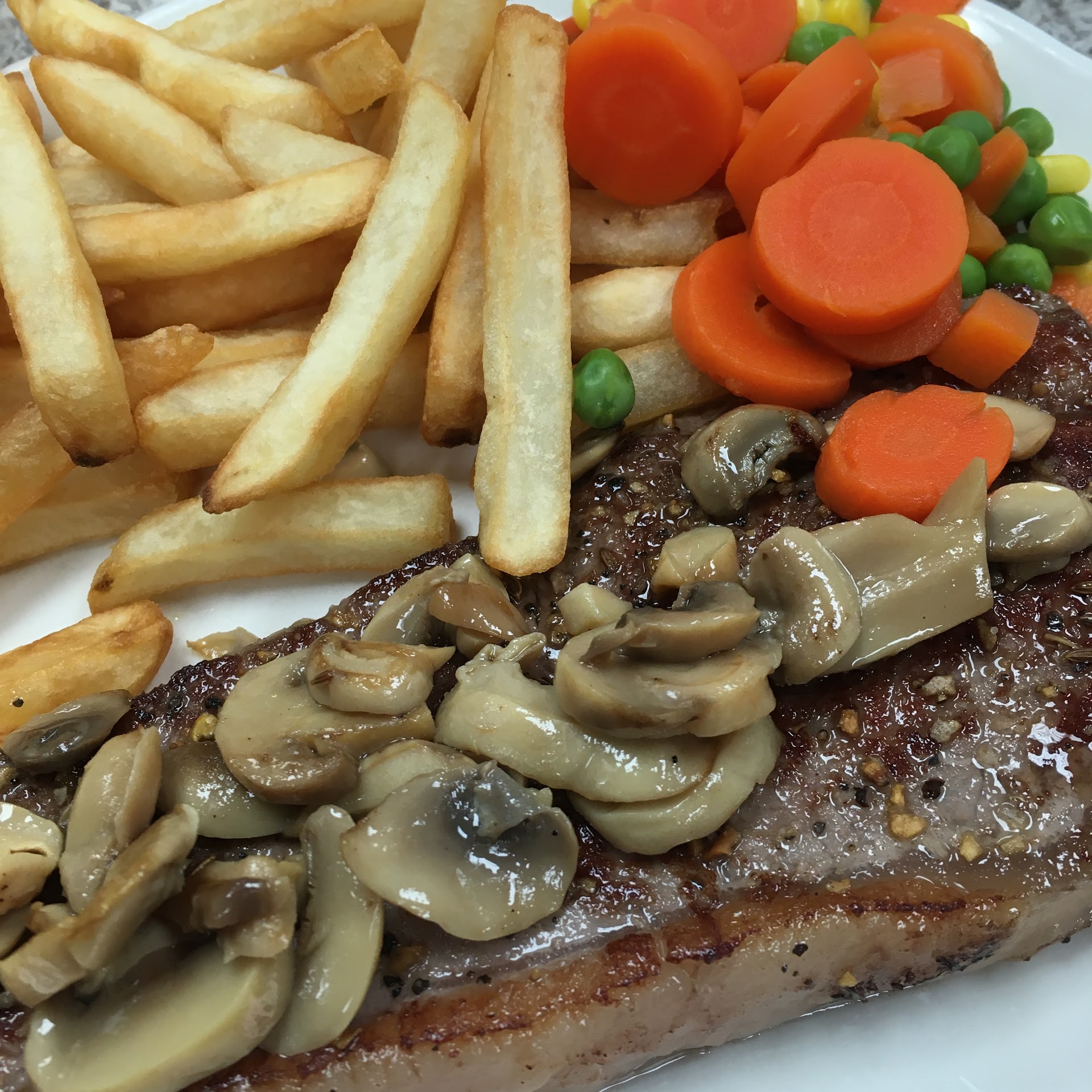 Back again! :) I had the New York steak, mum had a cheeseburger and fries. Both just as quick and delicious!