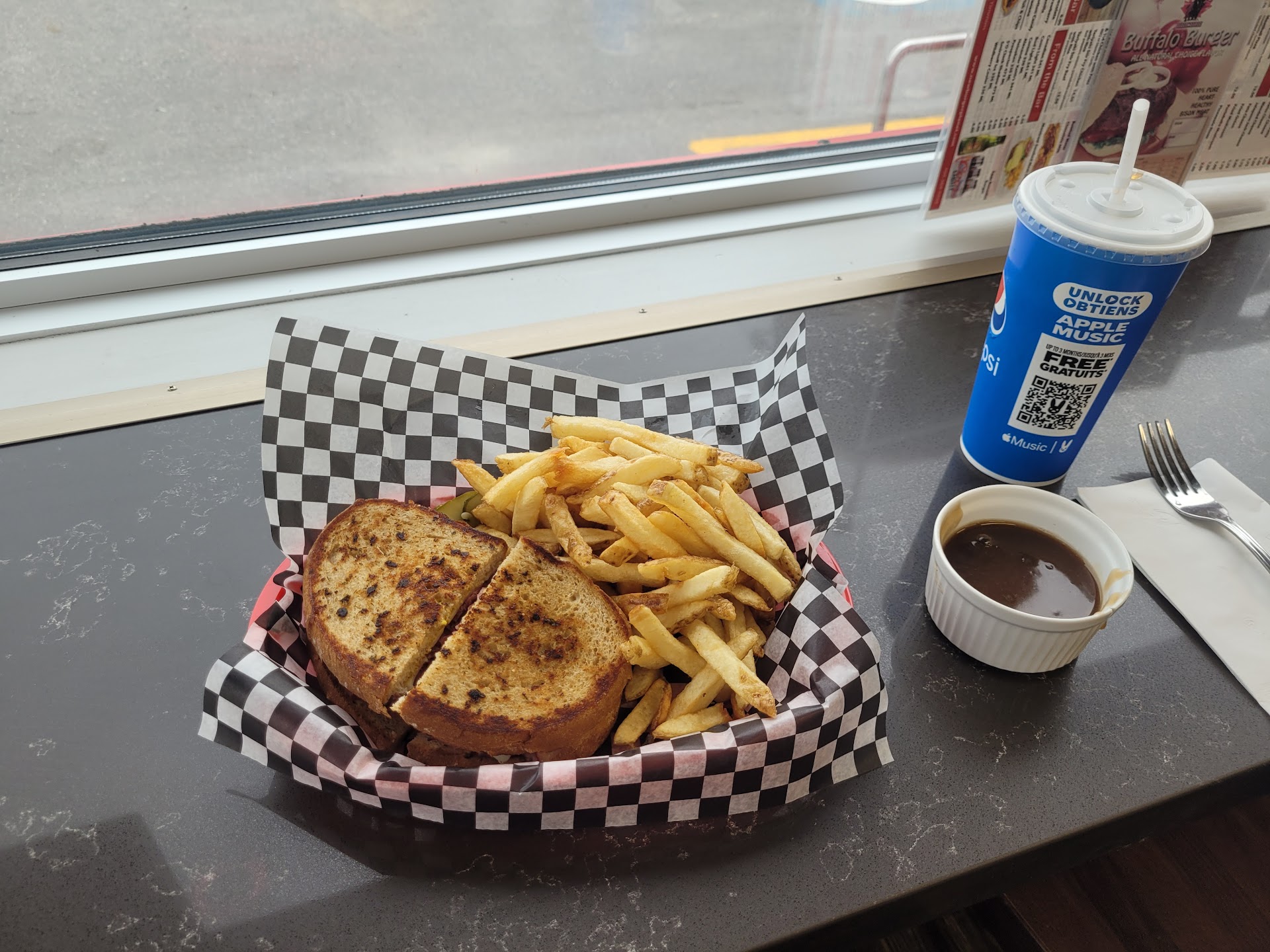 Read moreI stayed at the travelodge nearby for a month and ate here every day for dinner. The place is very clean. The food is very fresh and good. The service is top shelf. Literally everything on the menu is 9-10/10. Compared to Marios, the chicken place across the street, and BP down the road, these guys are winning. Also, for takeout, they are FAST. Here's what I had: Greek salad: 10/10 very big portions even as a side. Onion rings: 10/10 Wings 9/10 - only 9 because they don't have dry rub flavours which I like. Teriyaki Beef Stirfry: 9/10 only because one time it came a little short on the beef but other two times I had it there was plenty. Chili: 9/10, as good as Tims and Wendys anyway Philly Cheese Steak: 10/10 Meatball Sub 10/10 - better than Subway Patty Melt 10/10 Fries; 10/10 every time 1/2 rack ribs - 11/10! surprisingly good. I like my ribs a little firm, theyre not mushy like swiss chalet. Gravy: 9/10